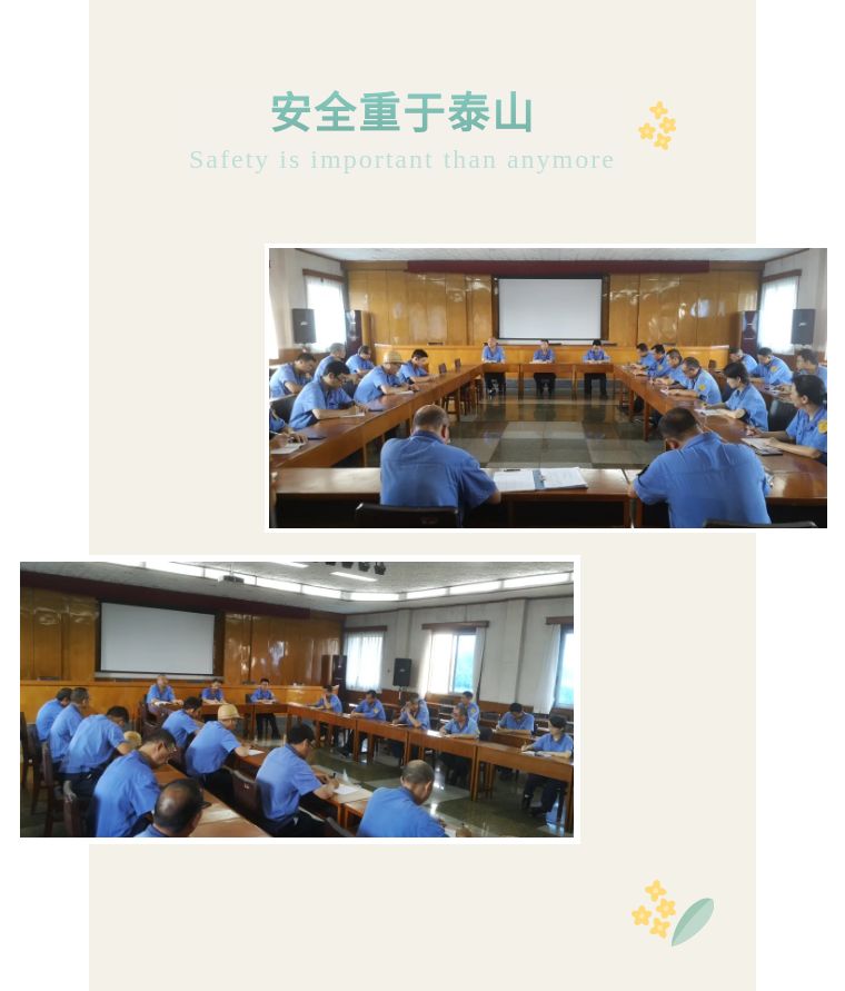 (集团)公司始终贯彻安全生产是公司生存发展重中之重的理念,安全生产工作要常抓不懈,各部门、各车间必须明确职责,要始终坚持“安全第一、预防为主、综合治理”的方针,要落实“四不放过”工作,认真做好安全防范工作,杜绝安全生产事故发生。